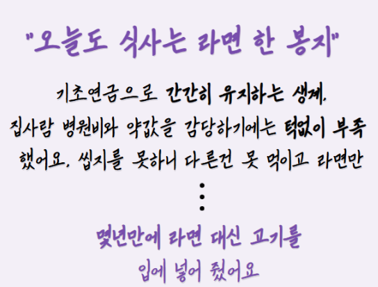 후원자님의 지원으로 어르신에게 미소를 되찾아 드렸습니다.